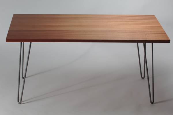Each piece I sell has been hand-crafted by me. The steel frames are hand welded and the wood has been planed, sanded, and finished in my shop.